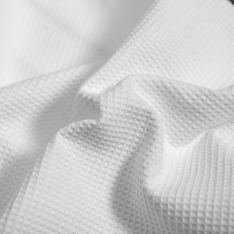 • Hotelový župan s kimonovým golierom s malým vaflovým golierom zo 100 % čistej bavlny